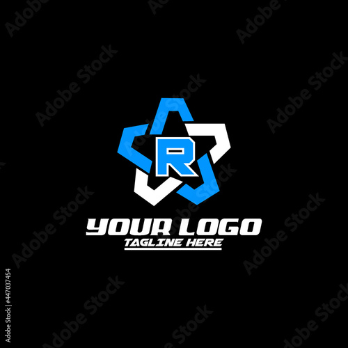 Letter R logo template with Star design element. Vector illustration. Corporate branding identity