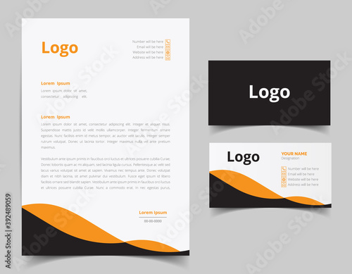 Letterhead template design and business card set design. corporate style set for business. full vector file