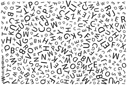 Letters. Abstract background. Seamless pattern. Cover design template, background, t-shirt, wrapping paper. Black letters on white background. Isolated. Vector illustration