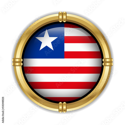 Liberia Flag circle shape button glass in frame golden. Background transparent