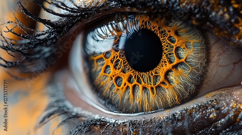 Lifelike close-up of human eye with intricate iris patterns, ultra-realistic