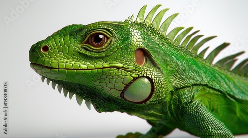 Lifelike Green Iguana with Intricate Scales and Detailed Features on a White Background