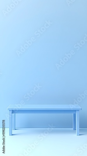 Light Blue Bench Against Light Blue Wall