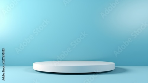 light blue gradient background with empty space for product display or presentation design. Blue studio room interior with soft shadows