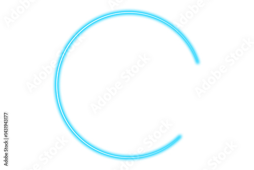 Light Blue Neon Glowing Circular Frame with Open Gap on transparent background.