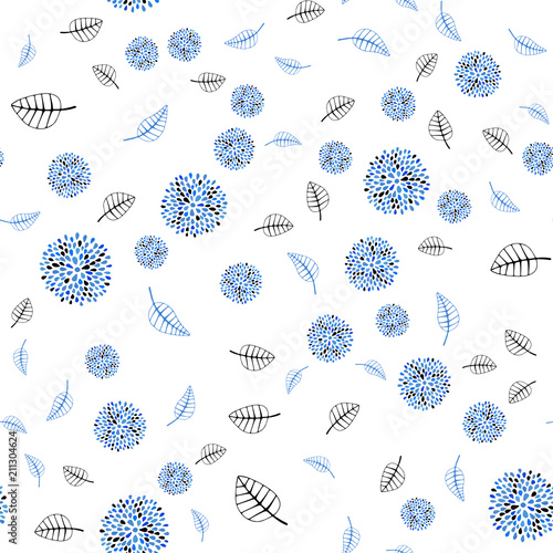 Light BLUE vector seamless natural pattern with leaves and flowers.