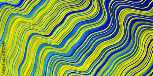 Light Blue, Yellow vector background with bent lines. Bright illustration with gradient circular arcs. Pattern for websites, landing pages.