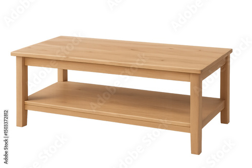 Light brown wooden coffee table with shelf isolated on transparent background, perfect for interior design projects