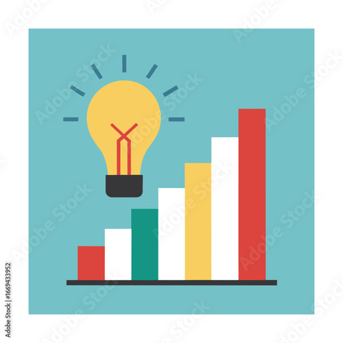 Light bulb above rising bar graph on blue background