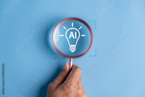 Light Bulb and AI Icon on Blue Background Symbolizing Innovation, Technology, and Future Concepts in Business and Creativity