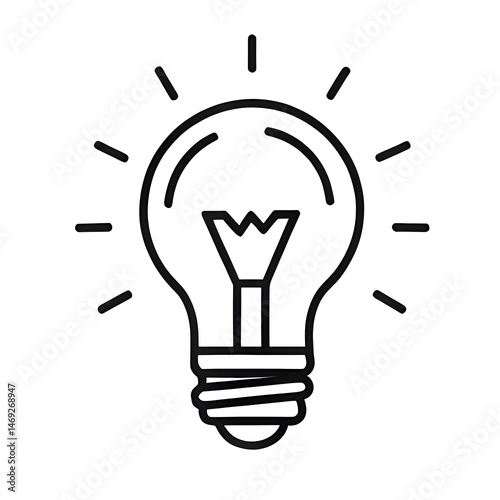 light bulb icon, black outline, isolated white background, new idea, breakthrough, innovation, inspiration