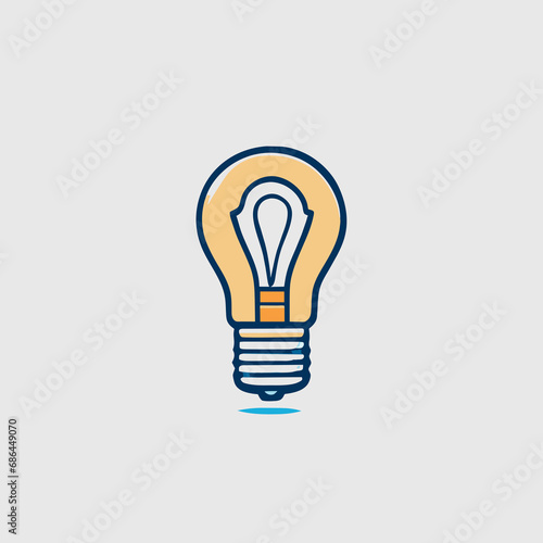 Light bulb icon on a light background. Idea symbol, electric lamp, lighting, innovation, problem solving, creativity. Originality, electricity, flat and colorful lines. Flat design