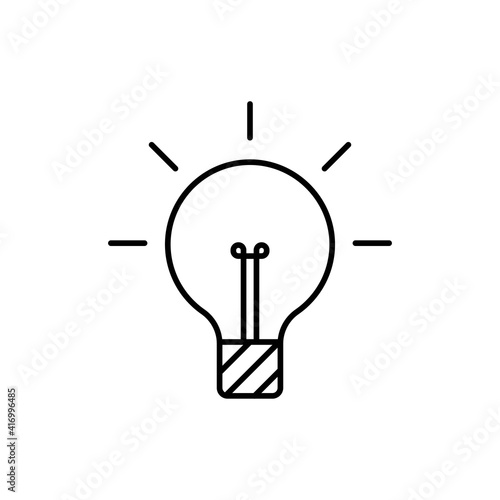 Light bulb line icon in black, isolated on white background. Idea sign, solution, thinking concept. Lighting lamp. Shine symbol. Trendy flat style for app, graphic design or web site UI. Vector EPS 10