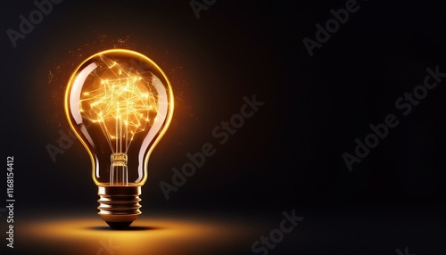 Light bulb on black background with copy space. Glowing light bulb symbol of new idea, creativity, innovation, concept, technology, equipment, glowing, inspiration, invention, solution,