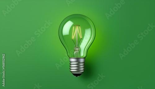 Light bulb on green background with copy space. Glowing light bulb symbol of new idea, creativity, innovation, concept, technology, equipment, glowing, inspiration, invention, solution,
