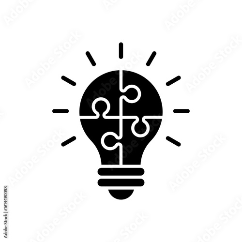 Light bulb puzzle icons set. Bulb checkmark black like quick tip line icon. Bulb icon expert, genius, idea, innovation, mark, creative, positive, smart, solution, strategy, think, tick, choice. Vector