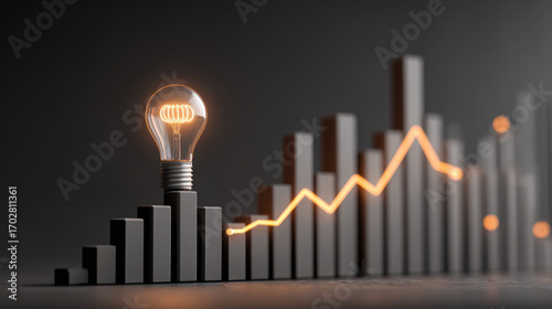 Light bulb representing ideas and innovation on rising graph, symbolizing growth and success in business. combination of light and upward trend evokes inspiration and motivation