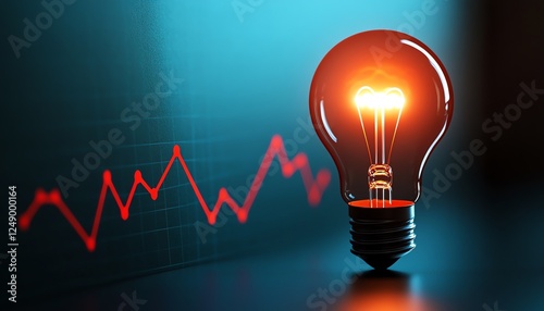 Light bulb shining brightly over a growing graph, representing financial planning, growth, and intelligent budgeting, sleek modern design