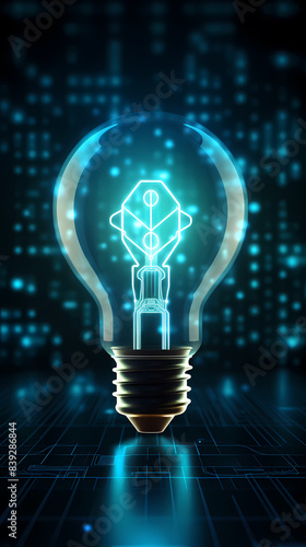Light bulb shining, digital data and innovation concept