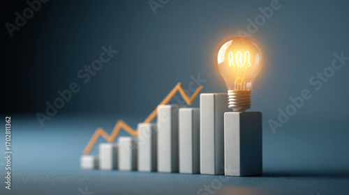 Light bulb symbolizes innovation and ideas, positioned above series of ascending bars representing growth and progress. This conveys sense of inspiration and success in business
