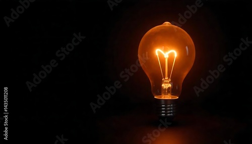 Light bulb with a heart shape glowing filament on a black background created with generative ai
