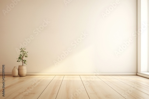 Light cream wall in an empty room with a wooden floor architecture flooring building.
