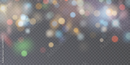 Light effect with lots of shiny highlights, Colorful bokeh lights background shining on transparent background.