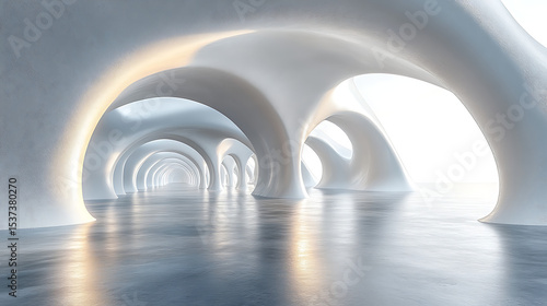 light in the tunnel, blue corridor in a modern building