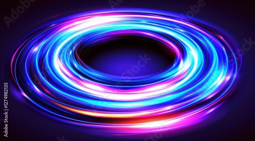Light Painting. Abstract circular vibrant lines on a blue, dark, simple background, modern decorative use