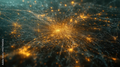 Light pulses traveling through a network of neurons, illustrating the concept of artificial neural networks in action