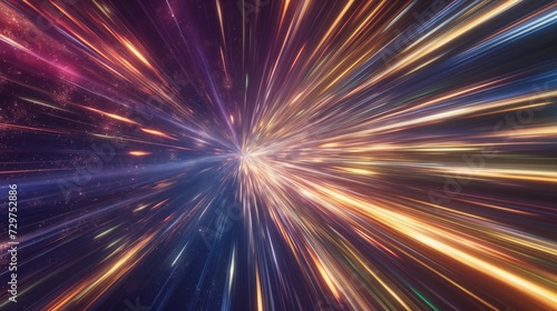 Light speed, hyperspace, space warp background. colorful streaks of light gathering towards the event horizon