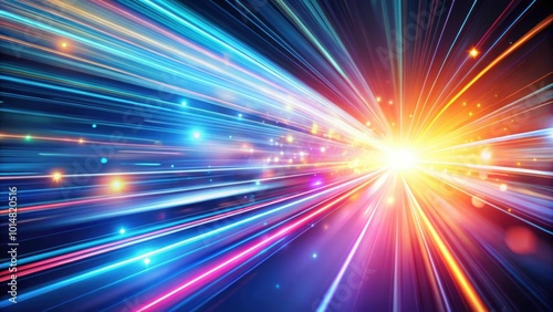 Light streaks and neon glowing lights in fast speed motion against an abstract blurred background