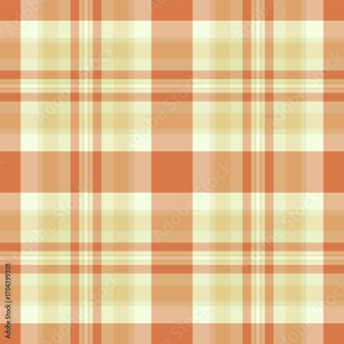 Light tartan fabric check, collage texture background plaid. Robe seamless textile vector pattern in orange and light colors.