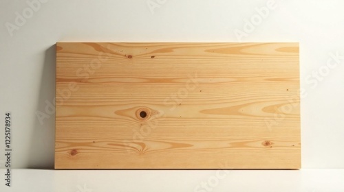 Light Wooden Panel Mockup Against a White Wall, Ideal for Displaying Your Designs or Text