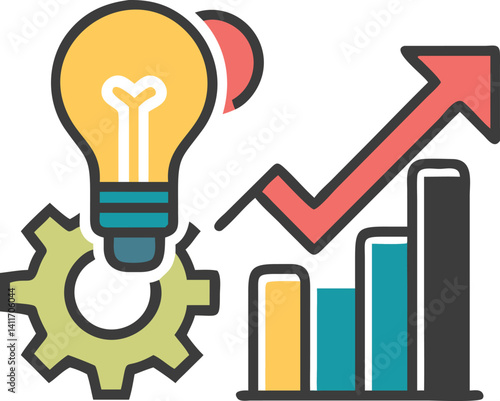Lightbulb & Gear, Upward Arrow & Bar Chart on Transparent Background
