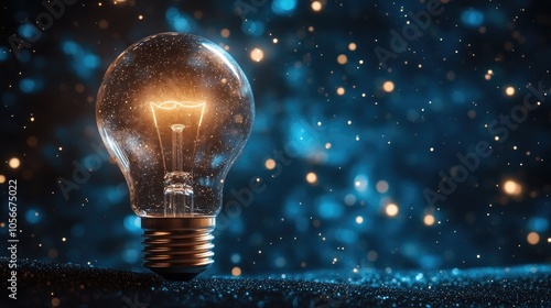 Lightbulb Surrounded by a Starry Sky Representing Infinite Possibilities of Creativity and Innovation