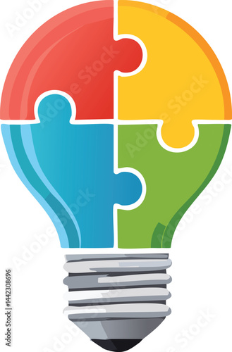 Lightbulb with Strategic Puzzle Pieces - Problem-Solving Vector for Business Innovation & Team Collaboration