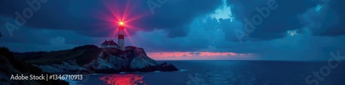 Lighthouse beam cuts through the darkness of the night sky, sky, oceanic, mysterious