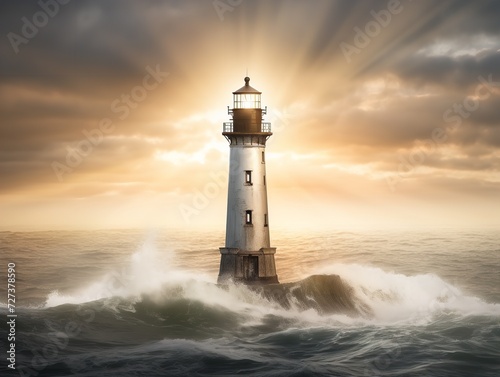 Lighthouse Shining Beam Guidance and Hope Isolated on White Background AI Generated