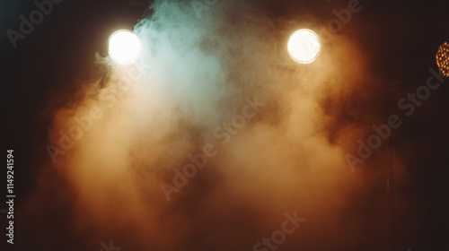 Lighting effects create an atmospheric backdrop for a live performance or event.