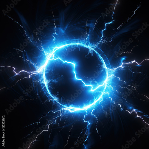 Lighting flash in the shape of circle. Ring of thunderstorm lightning as a portal