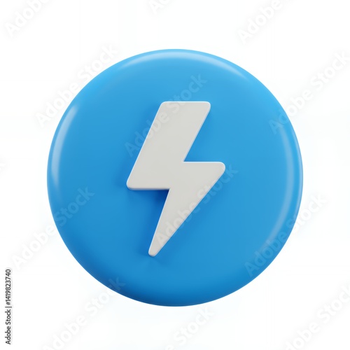 Lightning Bolt Icon on Blue Circle Rendered in 3d