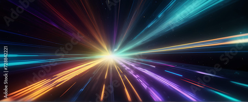 Lightspeed, hyperspace, space warp background. Colorful streaks of light gathering towards the event horizon.