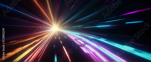 Lightspeed, hyperspace, space warp background. Colorful streaks of light gathering towards the event horizon.