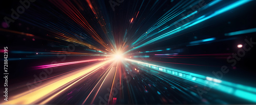 Lightspeed, hyperspace, space warp background. Colorful streaks of light gathering towards the event horizon.