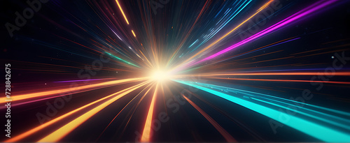 Lightspeed, hyperspace, space warp background. Colorful streaks of light gathering towards the event horizon.