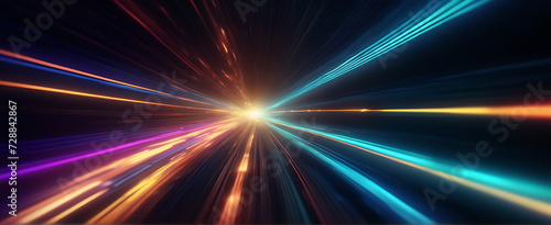 Lightspeed, hyperspace, space warp background. Colorful streaks of light gathering towards the event horizon.