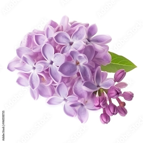 Lilac Blossom Close-up: A delicate close-up showcases the intricate beauty of a vibrant lilac flower, its petals radiating a soft pastel hue, with a single green leaf adding contrast.