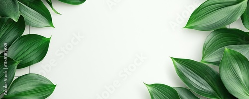 Lily leaves abstract background concept. Beautiful green leaves frame a blank space for creative design and nature themes.