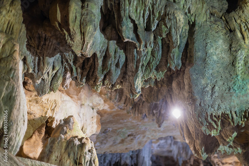 Lime stone stalactites in the cave - mineral formation that hangs from the cave's ceiling